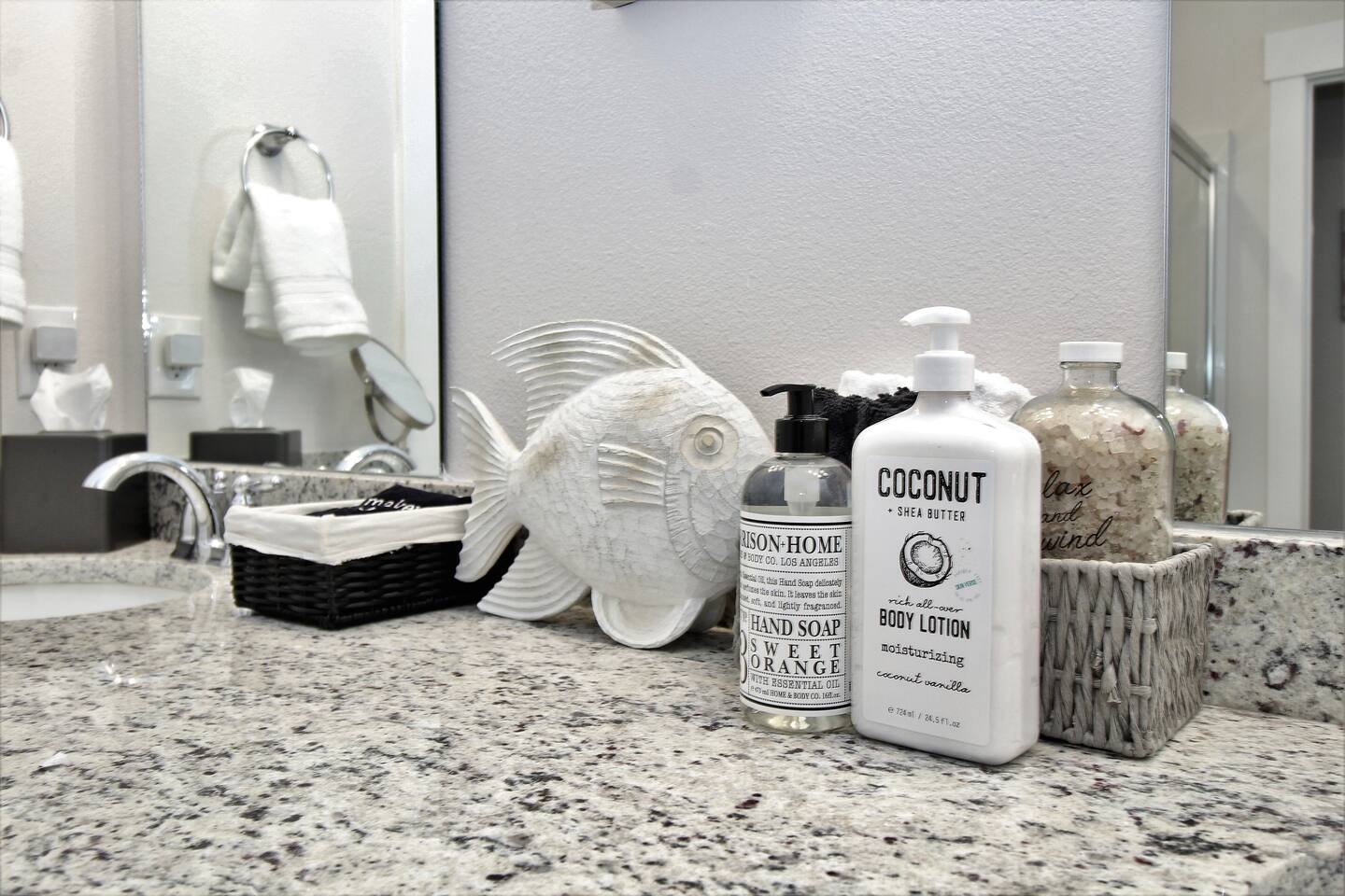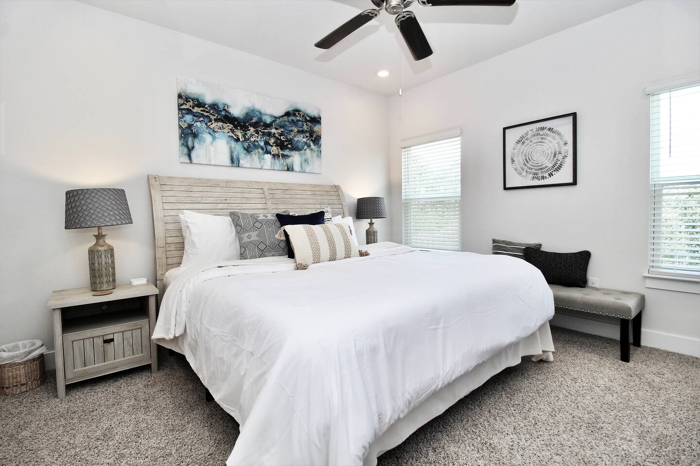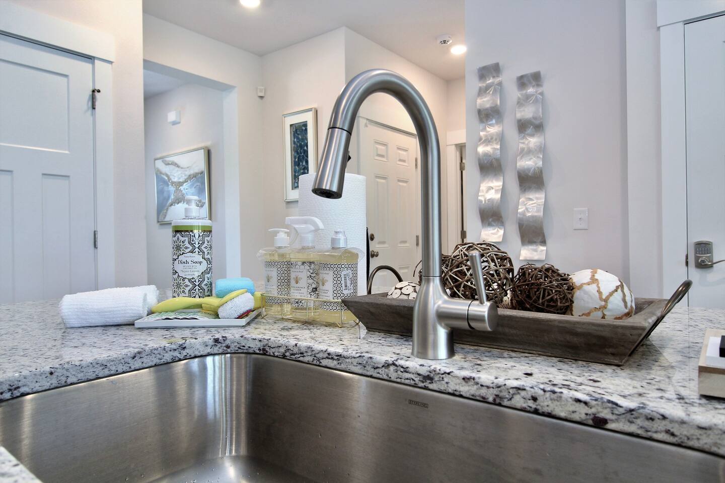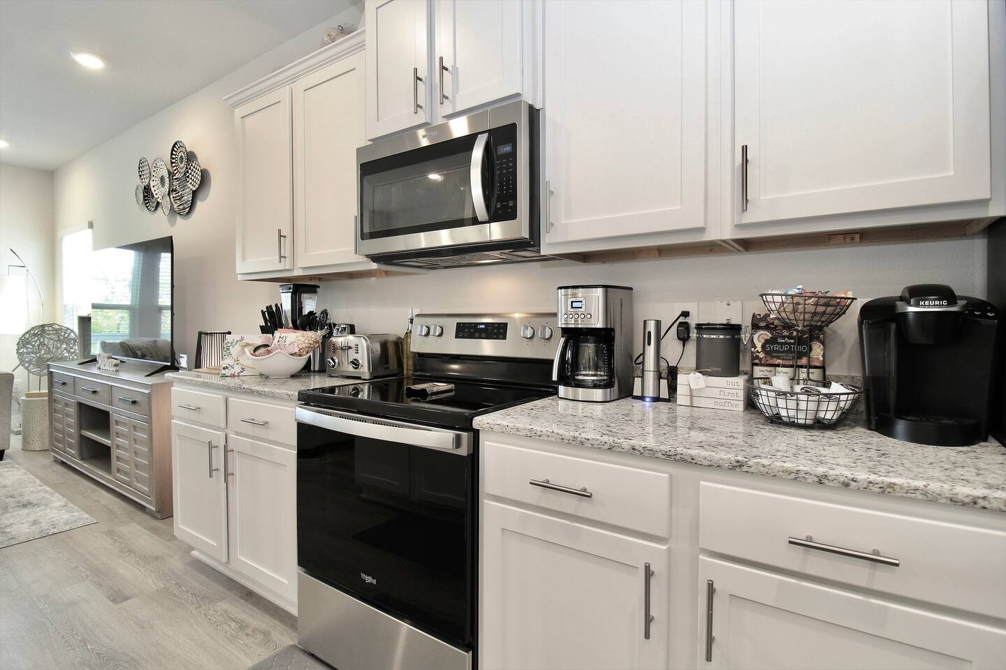 As soon as you enter this luxurious home, you are welcomed by a contemporary open-plan living area, designed and furnished with numerous modern amenities throughout this stylish home. The fully-equipped kitchen connects to the inviting living room, creating a perfect setting for memorable evenings. Ample natural light from the large windows makes the entire home welcoming and relaxing throughout the day. But the best is yet to come. When you're ready to rest and unwind, head to the comfortable bedrooms, designed for resort-style comfort, perfect for recharging after an exciting day enjoying the sun and the stunning beaches of the Emerald Coast. β LIVING ROOM β The living room immediately feels welcoming, with a comfortable sectional sofa and a coffee table that has an adjustable top for drinks and snacks. The 65β Ultra 4K smart TV makes it perfect for family movie nights! β 65β Ultra 4K Smart TV with DirecTV Stream and HBO Max included β Stylish, Adjustable Coffee Table β Access to the Private Porch β KITCHEN & DINING β The kitchen features modern appliances and is ideal for preparing anything from a simple breakfast and quick snack to a romantic three-course dinner. Spacious granite countertops and a central kitchen island offer ample space for culinary creativity. For coffee lovers, a designated coffee bar is available, stocked with dark and medium-roast Starbucks coffees. β Microwave / Electric Stove β Modern Refrigerator/Freezer β Keurig Coffee Maker and Cuisinart Drip Coffee Maker with Starbucks Coffees Serve your delicious meals at the kitchen island or in the dedicated dining room next to the kitchen if you choose to stay in and enjoy a home-cooked meal. β Kitchen Island with Bar Stools β Separate Dining Room with Modern Bar-Height Dining Table β GAMEROOM β The Gameroom is an ideal spot to enjoy quality time with family. It features a 65β Ultra 4K Smart TV, an XBOX game console with Ultimate Gamepass, and a classic Pac-Man arcade machine for entertainment. Additionally, there's a dedicated office area equipped with a desk, computer monitor, and wireless keyboard and mouse. β 65β Ultra 4K Smart TV with DirecTV Stream and HBO Max β XBOX with Two Game Controllers and Access to Ultimate Gamepass β Pac-Man Arcade Machine with a Choice of Classic Arcade Games β Corner Desk with 27β Computer Monitor, Wireless Keyboard, and Mouse β BEDROOMS β The home includes four tastefully decorated bedrooms, with TWO master suitesβone on the main level and another on the second floor. Both master bedrooms have king-size beds and private ensuite bathrooms. Each bedroom is furnished with luxury bedding to ensure a comfortable, relaxing stay after a fun day at the beach. β King Bed in Master on Main Floor β King and Queen Beds in Upstairs Bedrooms β 43β Ultra 4K Smart TVs in Every Bedroom, with DirectTV Stream and HBO Max Included β Spacious Closets with Custom Shelves and Luggage Racks β Ensuite Bathrooms in Two Master Bedrooms - Main Floor and Second Floor β BATHROOMS β Relax in the welcoming full bathrooms equipped with plush towels and all the necessary amenities for your comfort and convenience. β PORCH AND PATIO β Step outside to the private rear porch and enjoy stunning sunsets with your family, while taking in the tranquil view. The fenced backyard, equipped with a gas grill and fire pit, is ideal for relaxing after a fun day at the beach. We also provide complimentary beach gear and bicycles for your enjoyment and convenience! We look forward to welcoming you and your family to Perdido Retreat!